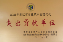 公司榮獲2021年度江蘇省建筑產業現代化“突出貢獻單位”
