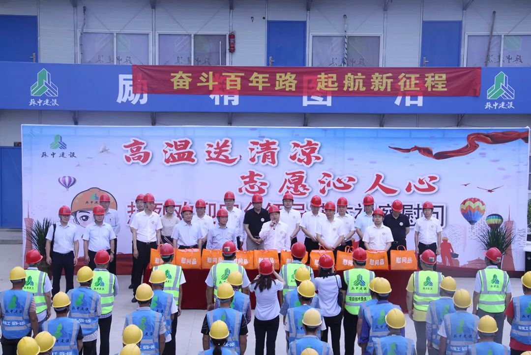 7月7日,海安市委副書記、市長譚真率隊蒞臨蘇中建設(shè)承建的商丘蘭臺府項目,開展“高溫送清涼,志愿沁人心”夏季高溫慰問及建筑業(yè)調(diào)研交流活動。市人大常委會主任張亞曦,市委常委嚴(yán)長江、郝三旺,市發(fā)改委、教體局、財政局、自然資源局、農(nóng)業(yè)農(nóng)村局、商務(wù)局、衛(wèi)健委、市場監(jiān)管局、建管局、總工會等部門主要負責(zé)人參加活動。蘇中建設(shè)總裁陳永明、副總裁李瑞榮、中原區(qū)域公司副總經(jīng)理徐海平、第七工程公司經(jīng)理張海榮、河南分公司經(jīng)理馬小波等陪同慰問。